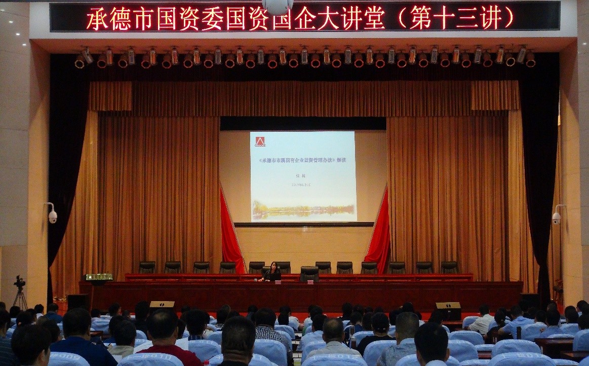 本次大讲堂由市国资委党委委员、副主任陈宏同志主持,市国资委监事会主席张楠同志向参会人员介绍了我市印发的《承德市市属国有企业监督管理办法》具体要求,并对该办法进行了详细解读;我公司总会计师赵俊华同志就融资工作进行了讲解,并向参会人员分享了完美官方网页版在融资活动中的经验。