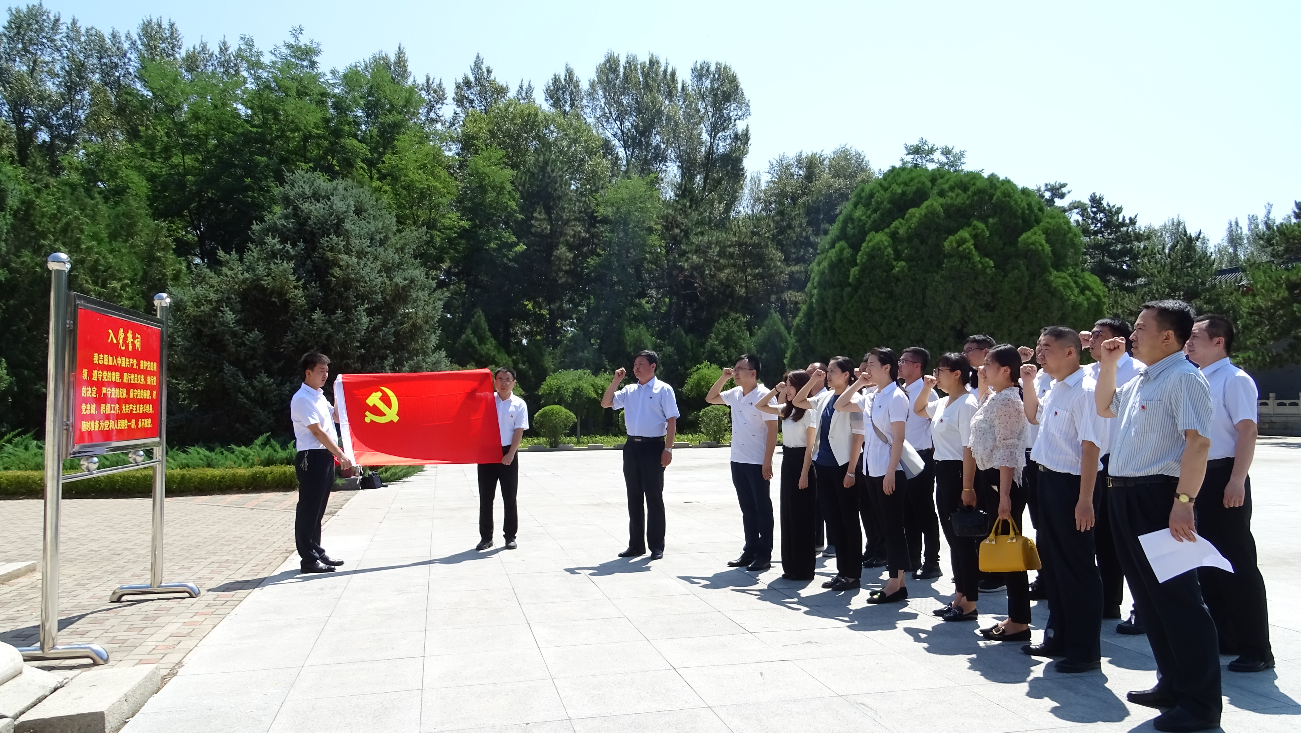 在本次活动中,大家怀着无比崇敬的心情,先后瞻仰了董存瑞烈士塑像、烈士纪念碑,向烈士纪念碑敬献了花篮,重温了入党誓词,拜谒了董存瑞烈士墓,参观了董存瑞烈士纪念馆、爱国主义教育纪念馆及董存瑞烈士牺牲地。