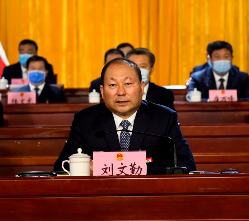 董晓宇柴宝良刘文勤郭旭涛李伟孔庆龙丁然李兴臣方志勇齐建文王素芝门玉生担任大会执行主席 柴宝良作政府工作报告 刘文勤主持大会