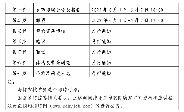 2022年6月1日至2022年6月7日16:00 在鸿雅招聘网(http://www.cdhyjob.com/)、鸿雅微信公众号、完美官方网页版官方网站(/)及上级部门要求的相关网站等发布招聘公告。