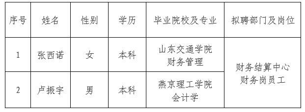 依据出资人代表机构审批意见,完美官方网页版委托第三方机构面向社会公开招聘财务岗员工2人。现对拟录用人员信息进行公示,公示期间如有异议,可通过电话、信函等方式反映,反映意见请署真实姓名。