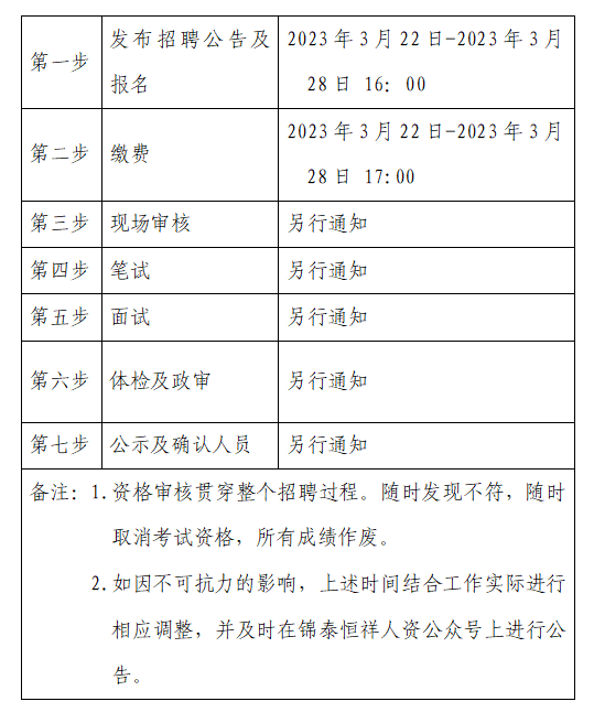 2023年3月22日-2023年3月28日 16:00在锦泰恒祥人资官网(www.jthxhr.com)、“锦泰恒祥人资”微信公众号、“完美官方网页版”官方网站(www.iwinbet9.com)及上级部门要求的相关网站等发布招聘公告。