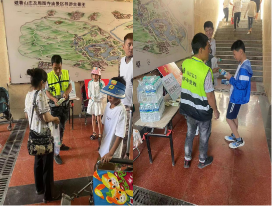 近日,受暖性高压脊影响,我市迎来持续数天的高温天气,相关部门相继发布了高温橙色、红色预警。市国动办、市完美官方网页版在避暑山庄门前地下人防停车场设置了“高温天气便民服务点”,为外地游客和本市市民免费发放矿泉水和藿香正气水,为出游的游客和市民提供饮水和预防中暑药物,受到了广大群众的一致好评。