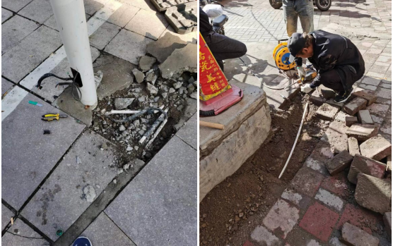 确保安全生产不出事故是提供优质服务的前提,近日,停车场公司在安全生产排查中发现热河大厦停车场用电线路途径的路面有破损、坍塌情况,我公司领导高度重视,迅速反应,立即成立抢修小组,安排专业人员查找线路,经排查发现地埋线管已经多处出现破损情况,电线裸露将存在极大的安全隐患,为了避免触电事故的发生,需要立即进行更换管线和路面修复工作。在复杂的环境下,我公司工作人员克服了种种困难,挖沟、下管、布线、接电、回填、铺砖、抹灰,在不影响停车场正常运营的情况下,在最短时间内完成了热河大厦停车场长度100余米的地埋管线更换和路面恢复工作,充分展现了停车场公司团队高效的工作效率和尽职尽责的敬业精神。